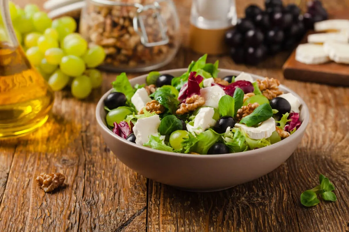 Salada de alface com uva e queijo