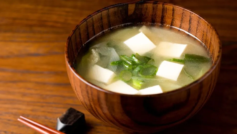 Em uma panela, coloque a água e leve ao fogo médio. Após levantar fervura, aguarde 1 minuto e desligue o fogo. Acrescente os flocos de peixe e deixe descansar por alguns minutos. Assim que os flocos de peixe estiverem no fundo da panela, coe o caldo e coloque-o de volta na panela. Dissolva em um recipiente o missô em 1 xícara de chá do caldo, coe e acrescente à panela. Adicione o tofu e aqueça, em fogo médio, até ferver. Sirva em tigelas com a cebolinha.