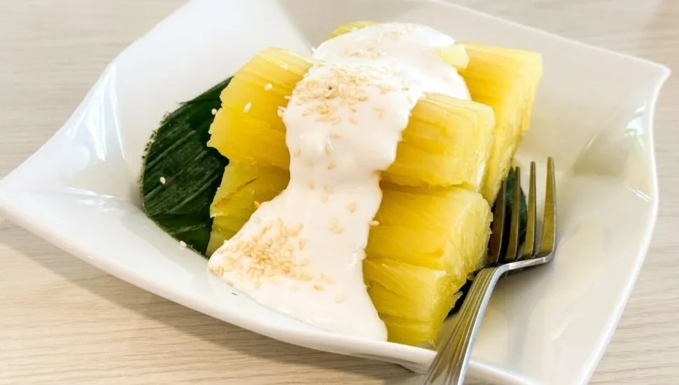 Em uma panela, coloque a manteiga e leve ao fogo médio para derreter. Adicione o amido de milho e mexa para incorporar. Reduza o fogo, acrescente o leite de coco e misture até engrossar. Por último, coloque o creme de leite e mexa por mais 5 minutos. Desligue o fogo, espere amornar e despeje o molho sobre a mandioca. Salpique com as sementes de gergelim e sirva em seguida.