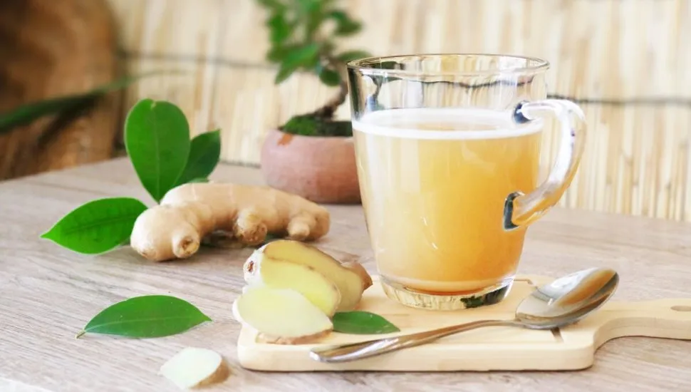 Em uma chaleira, coloque a água e leve ao fogo médio até levantar fervura. Acrescente o gengibre, reduza o fogo e cozinhe por 10 minutos. Desligue o fogo e coe. Sirva em seguida.