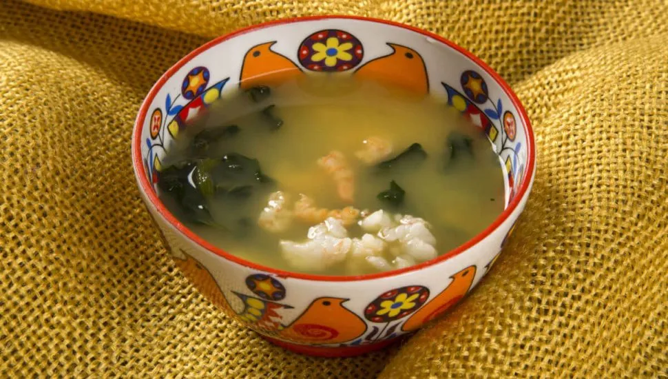 Depois, retire os camarões da água, descasque-os e reserve. Adicione a goma de mandioca na panela com a água dos camarões e leve ao fogo médio. Cozinhe até atingir a textura de mingau e reserve. Em outra panela, coloque o jambu, cubra com água e leve ao fogo médio para cozinhar até os talos ficarem macios. Sirva em uma cuia um pouco do caldo de tucupi, da goma, do jambu e alguns camarões.
