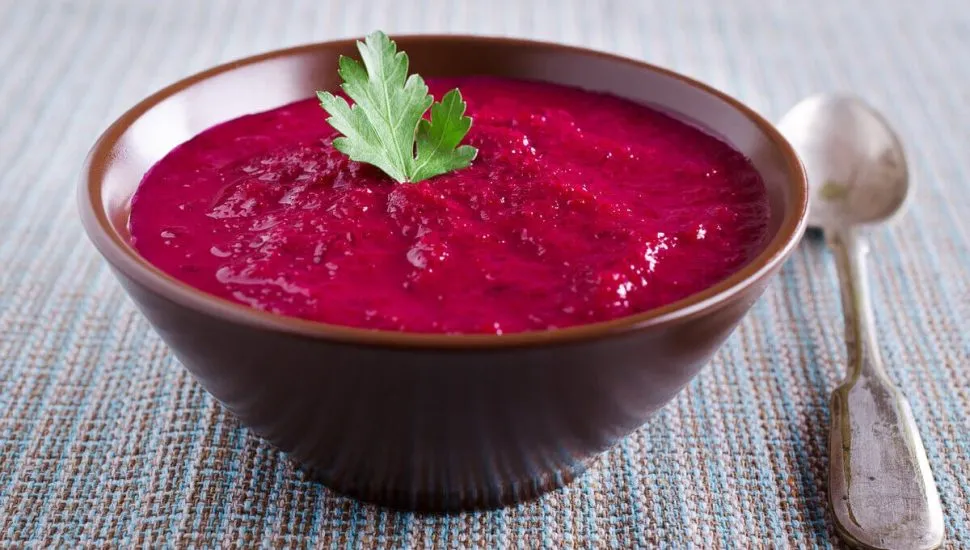 Em uma panela, coloque a beterraba, a batata, a cenoura e a cebola, cubra com a água, coloque sal e pimenta-do-reino e leve ao fogo médio para cozinhar até os legumes ficarem macios. Desligue o fogo, espere amornar, transfira os ingredientes para um liquidificador e bata até obter uma mistura homogênea. Junte o suco de limão e bata novamente para incorporar. Volte para a panela e aqueça em fogo médio. Sirva em seguida.