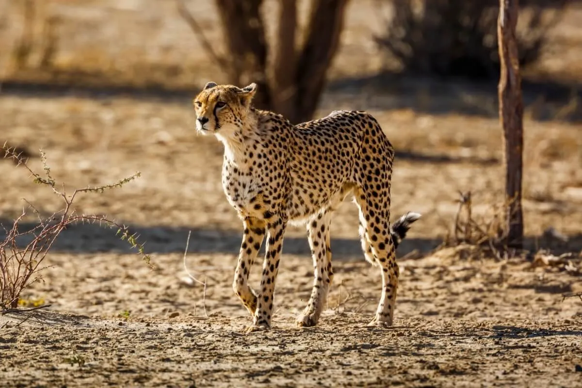 O guepardo, ou chita, é o animal terrestre mais rápido, alcançando até 130 km/h em sprints curtos de 500 metros. Nativo da África e de partes da Ásia, esse felino possui um corpo magro, pernas longas e uma cauda que funciona como leme para estabilizar sua corrida. Utiliza sua velocidade para capturar antílopes e gazelas. Apesar de ser um predador ágil, depende de emboscadas e terrenos abertos para maximizar sua eficácia durante a caça.