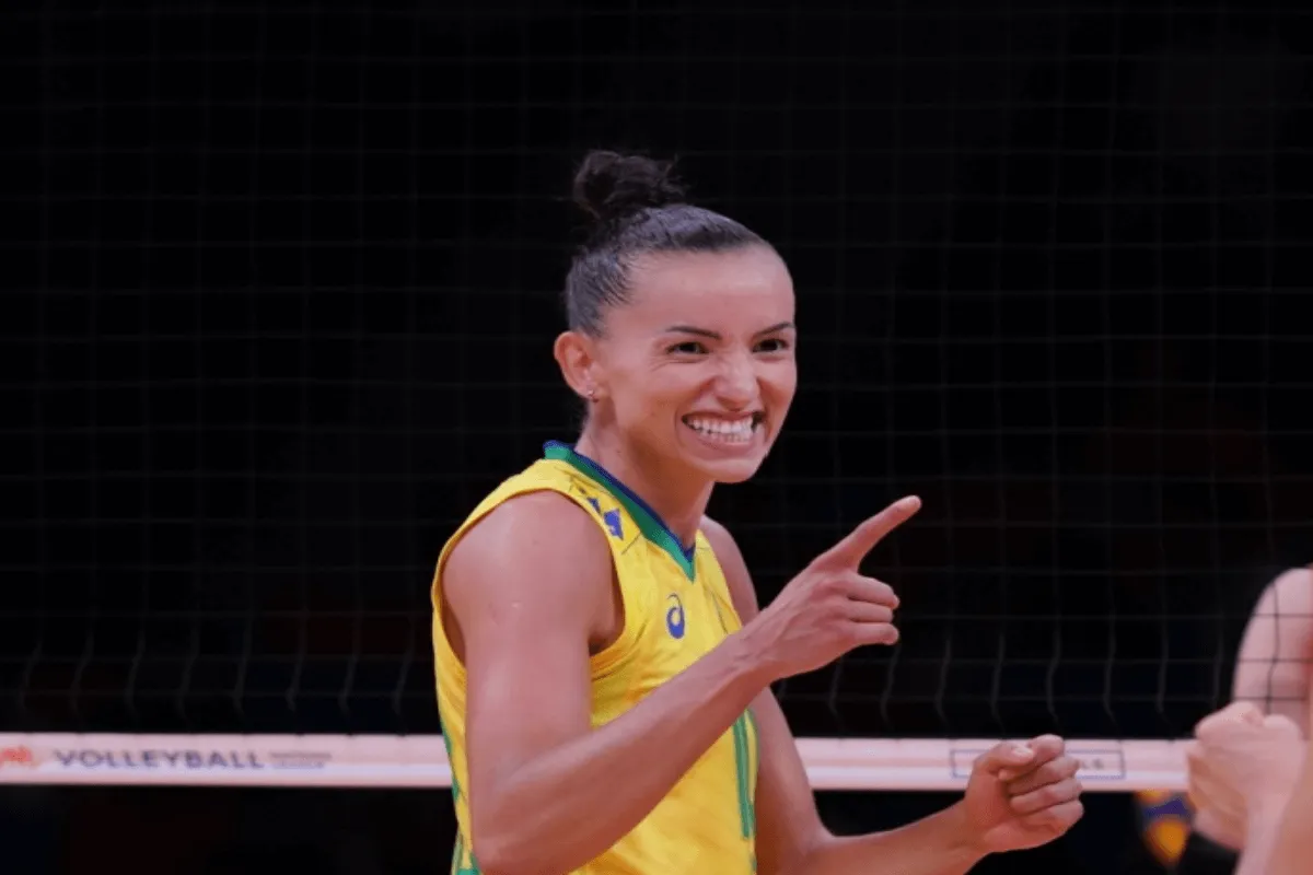 Gabi Guimarães, que veste a camisa 10, é a capitã da seleção feminina de vôlei do Brasil, desde 2022, e tem se destacado na campanha em busca do ouro nos Jogos Olímpicos de Paris. Em sua terceira participação olímpica, a ponteira desempenha um papel fundamental na equipe comandada por Zé Roberto. Na última partida contra a República Dominicana, que garantiu ao time a vaga na semifinal, a atleta marcou 20 pontos, liderando a equipe com seu desempenho excepcional e consistência em quadra.