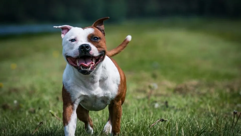 Originário da Inglaterra, o staffordshire bull terrier foi inicialmente criado para rinhas de cães. Hoje, é conhecido por sua natureza gentil e amorosa, além da lealdade e disposição para agradar. Ele possui um físico musculoso e compacto, com uma expressão facial que pode parecer intimidadora para alguns, mas, na verdade, ele é carinhoso e afetuoso, especialmente com crianças.