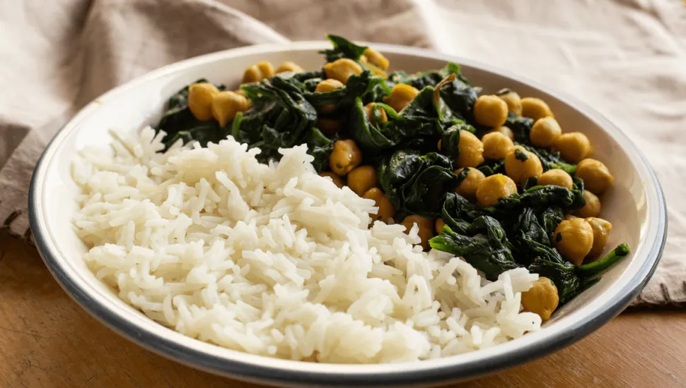 Grão-de-bico com espinafre