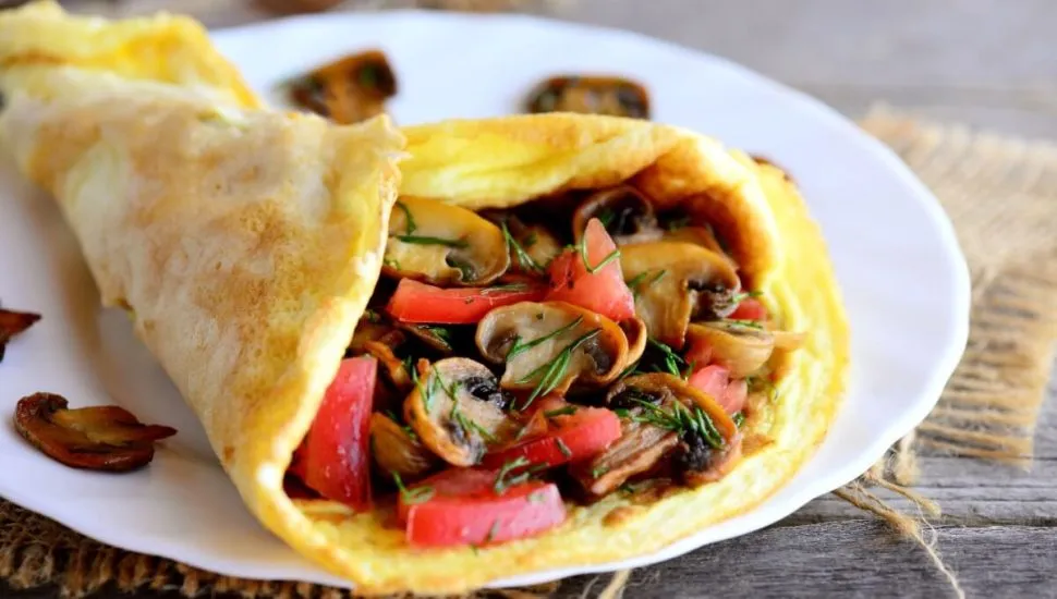Omelete com cogumelo e tomate