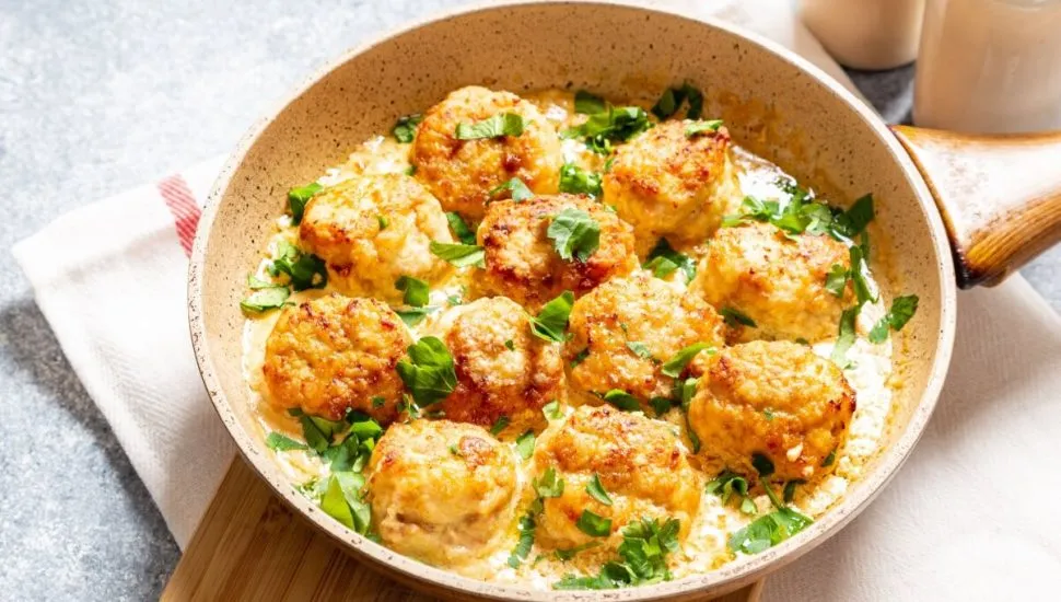 Em uma tigela, misture o iogurte natural, o suco de limão, o alho, a cúrcuma, o sal e a pimenta-do-reino. Acrescente a água quente e mexa até formar um molho liso. Despeje o molho sobre as almôndegas na frigideira. Cozinhe em fogo baixo por cerca de 8 a 10 minutos, mexendo delicadamente ocasionalmente, até o molho reduzir levemente e as almôndegas ficarem cozidas por dentro. Finalize com a salsinha e sirva em seguida.
