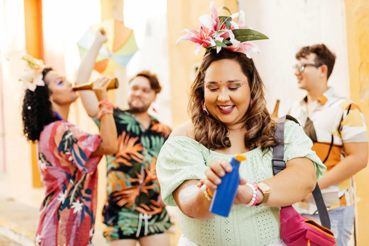 Os foliões podem se deparar com calor intenso durante o Carnaval. Por conta disso, o uso protetor solar se torna crucial, pois ele evita problemas como exposição aos raios UVA e UVB e previne manchas e câncer de pele. Além disso, o uso de chapéus e sombrinhas pode auxiliar na proteção contra o sol.