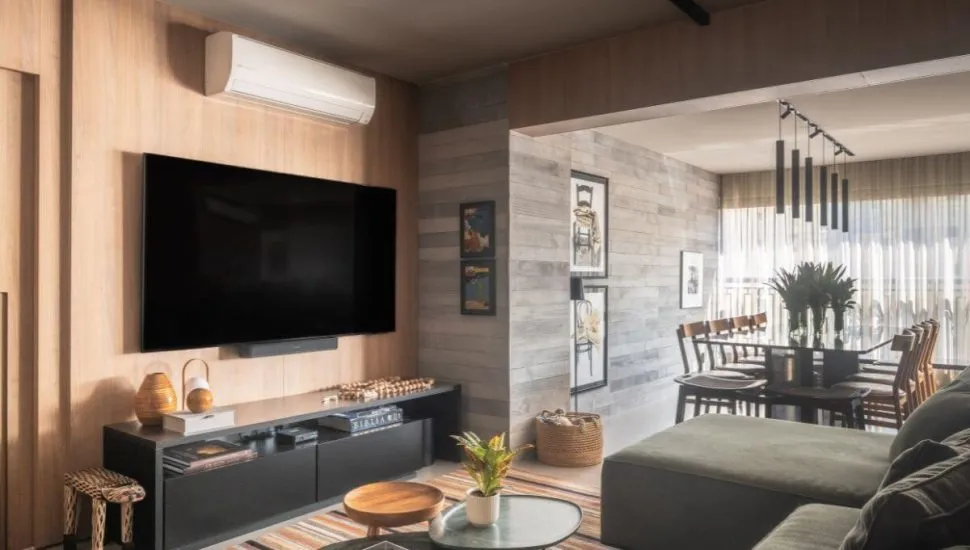 Cortinas são uma excelente opção para manter a privacidade interna e externa dos ambientes, impedindo olhares diretos. “Como muitas residências são voltadas para algum vizinho, as cortinas se tornam essenciais para manter discrição, principalmente nos andares mais baixos de apartamentos com grande circulação de pessoas”, diz Danielle Dantas.
