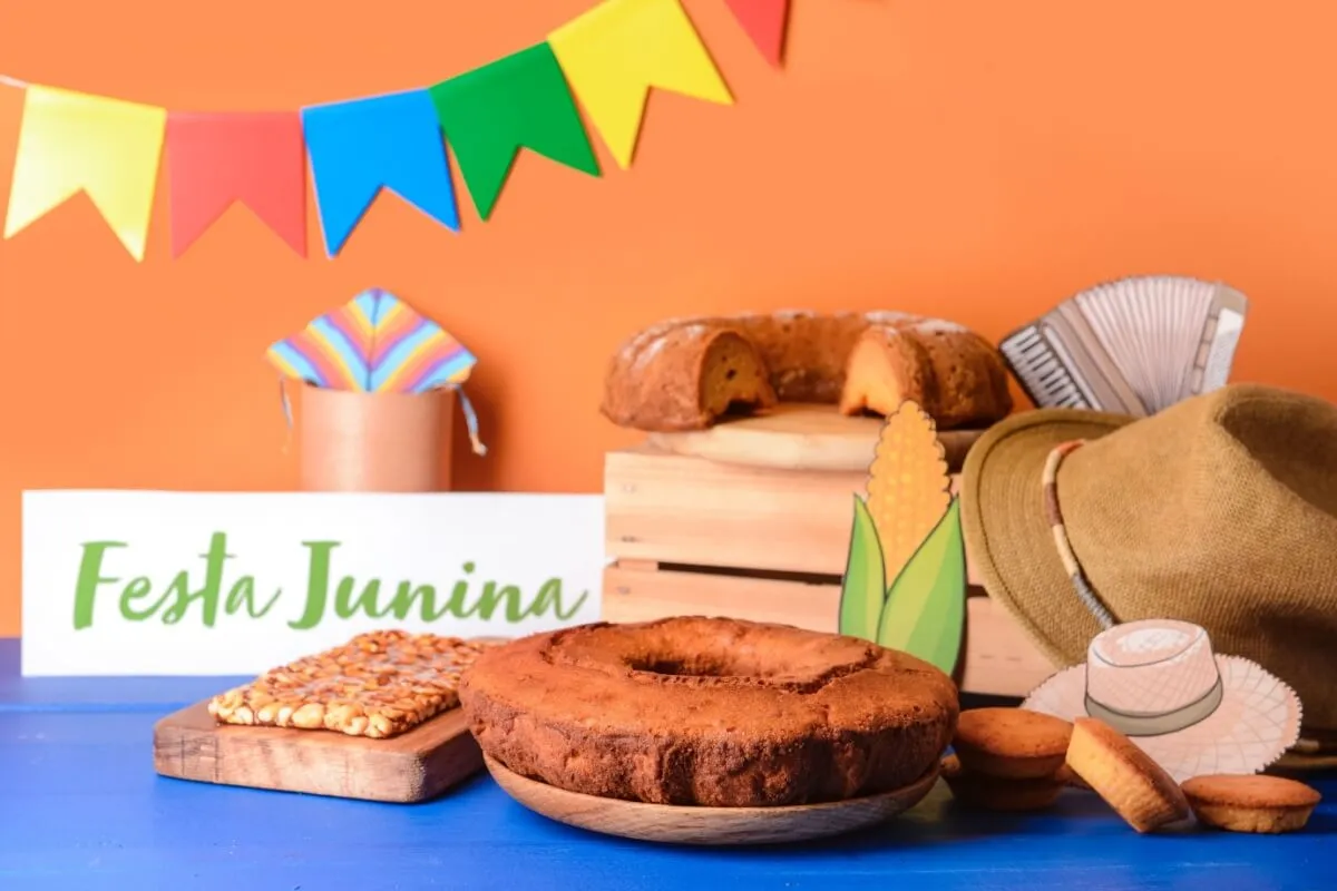 Além da decoração, os doces típicos de São João são essenciais para compor a mesa. Canjica, pé-de-moleque, paçoca e bolo de fubá, apresentados em travessas rústicas, não só deliciam os convidados como também enfeitam a mesa, tornando-a ainda mais atrativa.