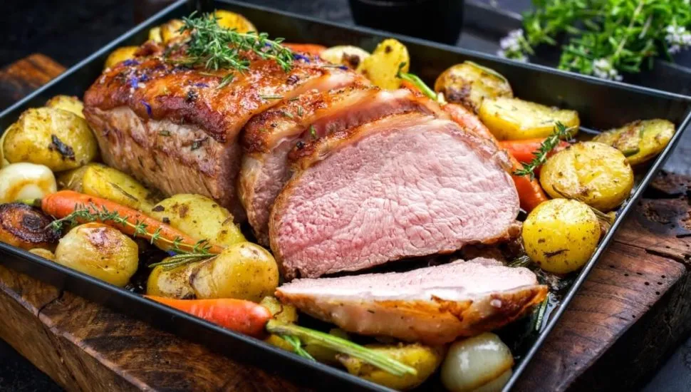 Lombo assado com batata e cenoura