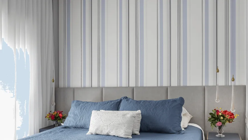 As listras são uma escolha clássica que nunca perde força na decoração. Além de imprimirem movimento e dinamismo às paredes, elas têm o poder de influenciar a percepção de proporção dos ambientes — quando aplicadas na vertical, ajudam a alongar o pé-direito; na horizontal, ampliam a sensação de largura.