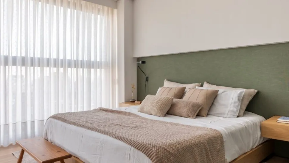 Especialista em projetos contemporâneos, Raphael Wittmann acredita que a paleta deve ser pensada de dentro para fora, refletindo a identidade de quem dorme ali. Por isso, sugere uma base em tons claros e neutros, como bege, branco, areia, cinza mais quente e verde-oliva, que evocam serenidade e ampliam visualmente o ambiente. Outras cores podem ser utilizadas de acordo com o gosto pessoal, mas devem ser acolhedoras. Para contrastar, tons mais marcantes podem ser usados pontualmente em objetos ou paredes de destaque.