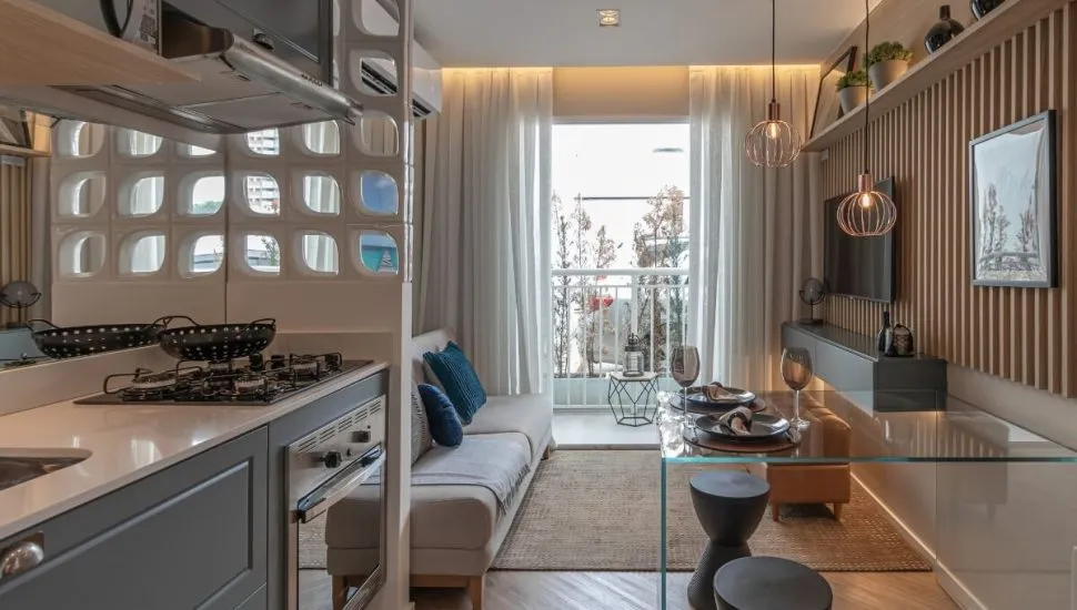 “O cobogó serve para dois propósitos distintos. Nas áreas externas, como fachadas e muros, funciona como item decorativo. Já nas áreas internas, serve para dividir espaços, mantendo a ventilação e a entrada de luz natural nos ambientes”, explica Flávia Burin.