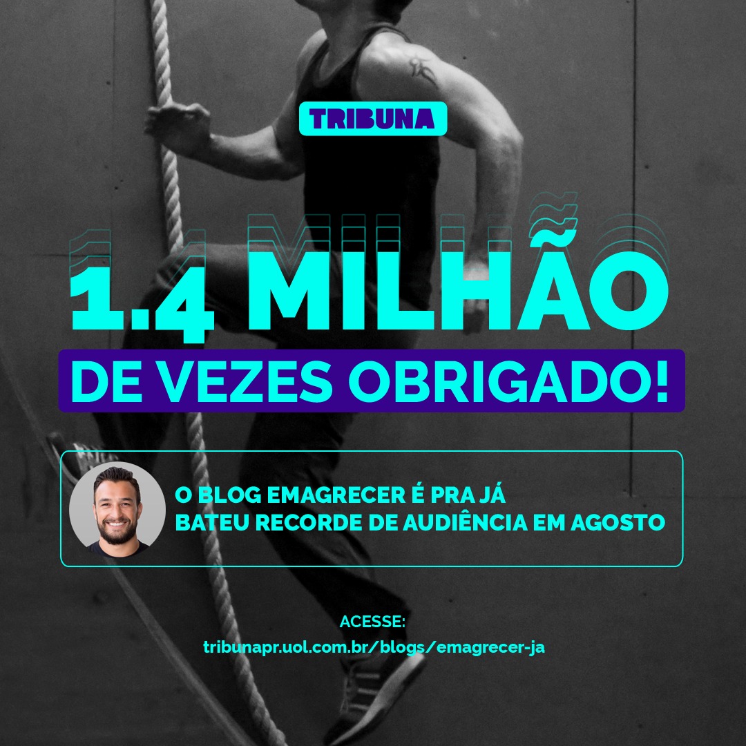 Parceiro da Tribuna desde 2017, o blog Emagrecer é pra já, comandado pelo personal trainer Zanon Macedo, bateu seu recorde de audiência no mês de agosto. Com diversos conteúdos “‘bombando” ao longo do mês, a coluna chegou à marca de 1.400.000 de visitantes únicos. O blog do Zanon fala de emagrecimento, especialmente voltado ao público com mais de 40 anos.