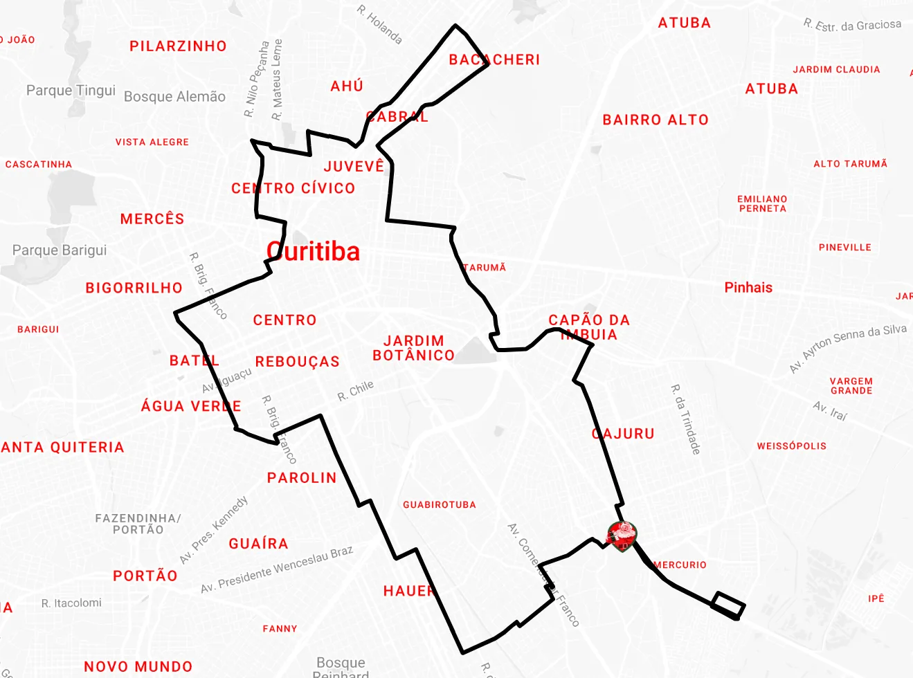 O trajeto será percorrido em velocidade reduzida, permitindo que as famílias acompanhem a apresentação. Confira, abaixo, o mapa de onde a caravana vai passar em Curitiba: