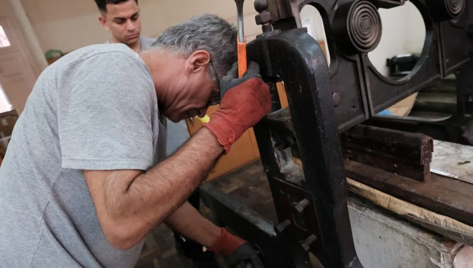 O destaque da transferência é a prensa centenária Krause, um gigante de ferro fundido com cerca de uma tonelada, que já encontrou seu novo lar na Casa Azul. Este equipamento, encomendado pelo próprio Barão do Serro Azul diretamente da Alemanha no final do século 19, carrega em si a história da impressão gráfica curitibana.