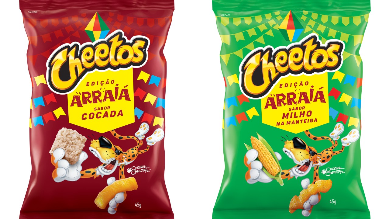 Pela primeira vez, a Cheetos, da Pepsico, vai lançar dos novos sabores em homenagem as festividades juninas. A edição limitada “Cheetos Arraiá”, vai contar agora com os sabores Cocada (doce) e Milho na Manteiga (salgado). A previsão da marca é de que os salgadinhos estejam disponíveis nos pontos de venda até o final do mês de junho.