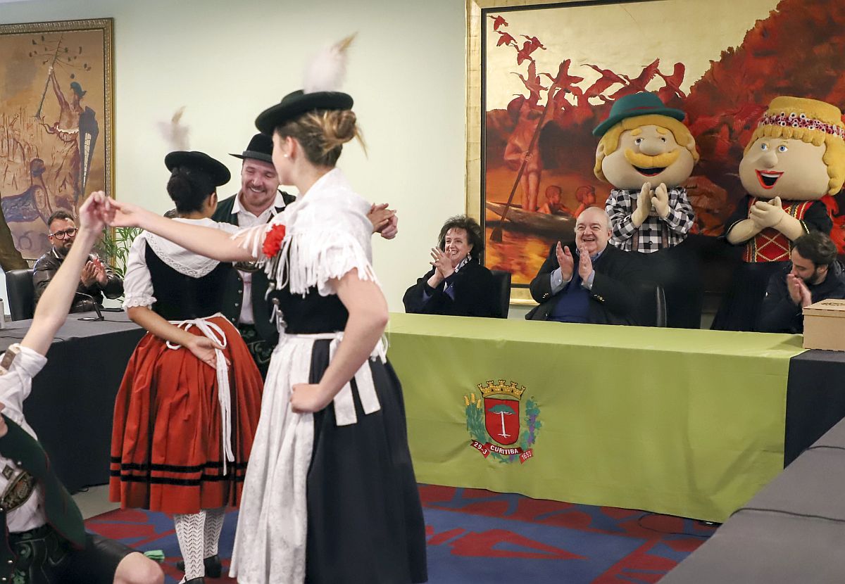 “Não é comum um prefeito receber para uma audiência alemães a caráter e um prato de eisbein [joelho de porco] e chucrute. Mas tudo isso é para receber a Oktoberfest em Curitiba, uma cidade de muitas cervejarias e grande tradição alemã. Convido todos a participar desta festa”, disse Greca.