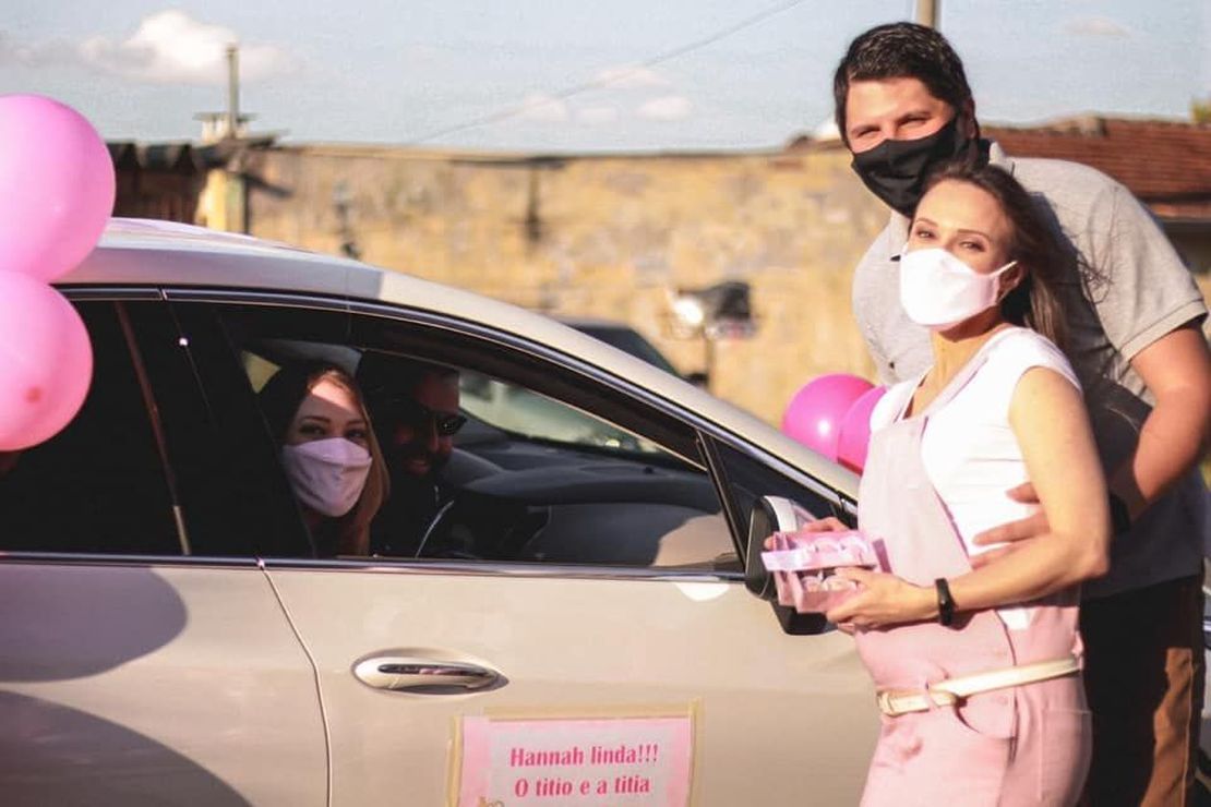 Até que começaram a aparecer ideias de eventos em estilo drive-thru e carreatas por todo Brasil. Eu e meu marido Dioni Brandt achamos a ideia interessante, comentamos com a família a respeito da possibilidade e todos nos apoiaram. Assim, no lugar de um evento tradicional em um salão de festas com direito a salgados, doces e brincadeiras, decidimos fazer tudo ao ar livre, na rua, com cada convidado usando máscara dentro do seu carro, os presentes sendo higienizados com álcool e todos levando docinhos para comer em casa.
