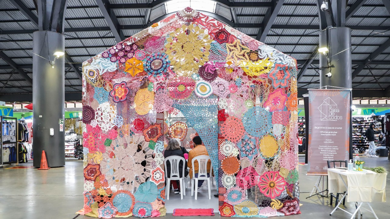 A Casa de Todos, aberta nesta segunda-feira (12), Dia do Crochê, é um projeto idealizado pela artista visual Leila Alberti. A instalação é formada por aproximadamente 400 peças de crochê feitas por artistas e crocheteiras do coletivo Lucianas & Marias.