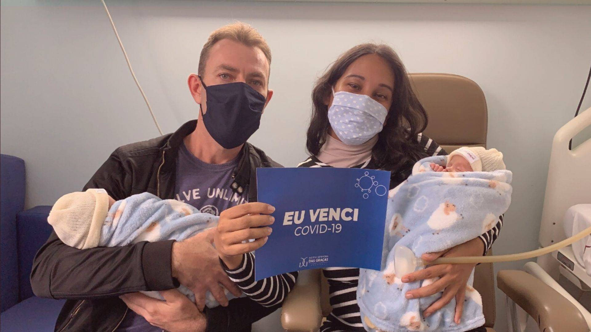 “Eu ouvia o chorinho deles e, como mãe, meu maior desejo era poder abraçar os dois e ver seus rostinhos, mas eles foram direto para o internamento porque precisavam de oxigênio”, recorda a curitibana, emocionada. Ela também foi levada para a UTI a fim de iniciar o tratamento que precisava e torcia para que seus bebês não estivessem infectados. “Graças a Deus, eles foram submetidos aos testes e deu negativo”.