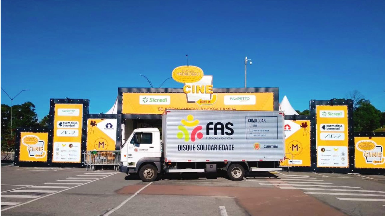 As doações recebidas durante os três meses de cine drive-in serão entregues para instituições beneficiadas da FAS, Hospital San Julian e Ação Solidária Curitiba.