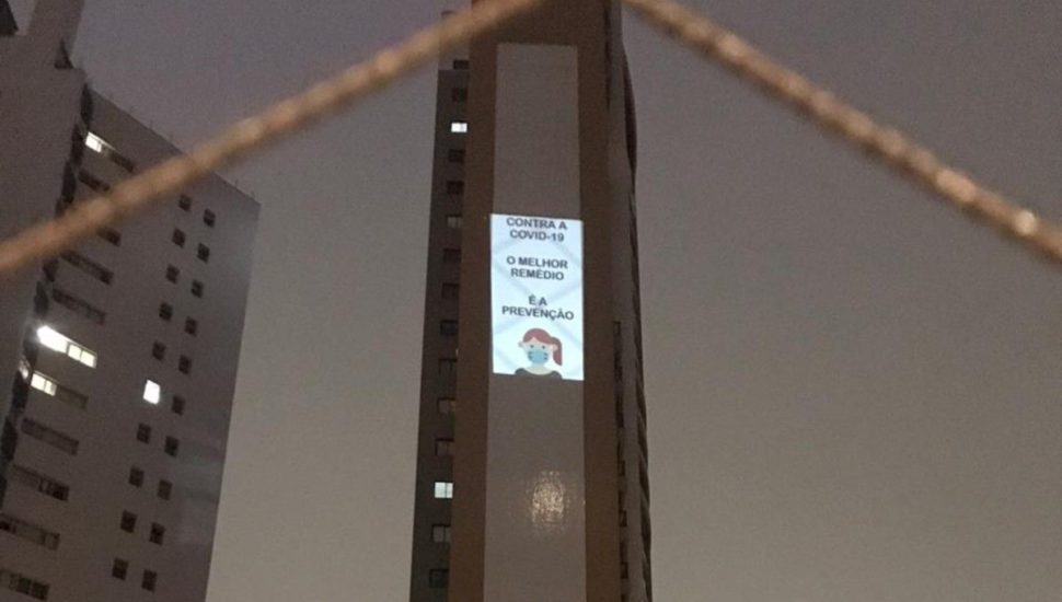 Família projeta mensagens de esperança e de prevenção ao coronavírus em prédio de Curitiba; assista!