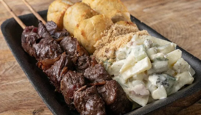 O Ukra Bar estará com cardápio especial servindo um kit almoço com dois espetinhos de carne, frango ou porco, maionese caseira e pão de alho a R$ 40,00. Quem preferir pode pedir o espetinho avulso a R$ 12,00 cada, além de porções individuais de batata frita, polenta e pasteizinhos de queijo, carne, pizza e proteína de soja a R$ 10. Para os que quiserem provar a comida típica ucraniana, o bar estará com porções de perohe com molho bolonhesa ou nata/nata e bacon a R$ 25,00.