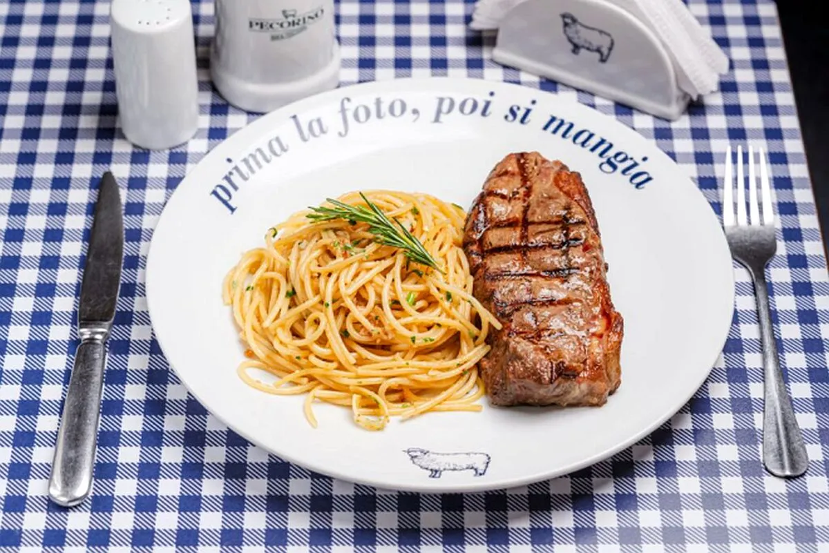 - Pecorino Bar & Trattoria (almoço e jantar – R$ 119,90) — Bife de Chorizo Con Spaghetti Aglio e Olio
