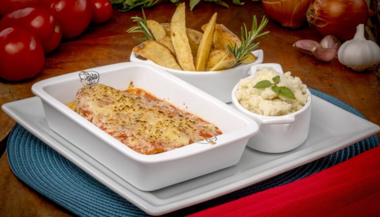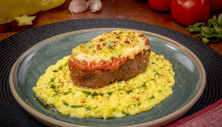 Entre as receitas de parmegiana com carnes, os clientes vão encontrar filé mignon, alcatra, frango e cortes suínos. As vegetarianas vêm com berinjela ou abobrinha empanadas e gratinadas (incluindo opção vegana). E tem ainda as com peixes como o brasileiro pirarucu, o argentino gatuzzo ou ainda a tradicional tilápia.