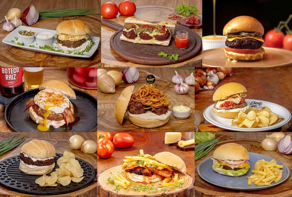 Descrição: Pão d´agua crocante, bolinho de carne bovina temperado, queijo muçarela derretido, aioli, fatia de bacon crocante, ovo caipira com gema mole e páprica picante.