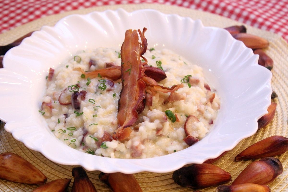Risoto de Pinhão – Risoto de Pinhão com bacon e queijo parmesão. R$ 35,80