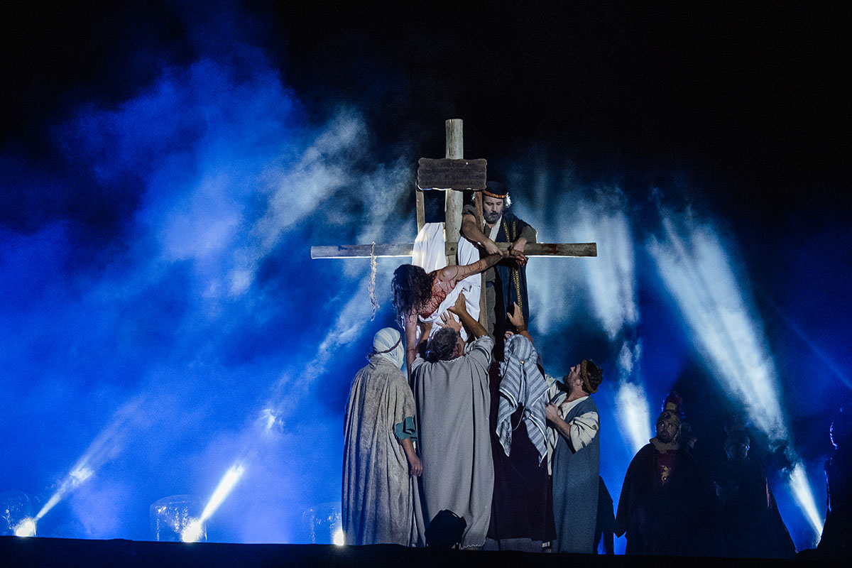 A encenação foi composta por 31 cenas que narram a vida de Jesus Cristo, desde o nascimento até a morte, ascensão e ressureição. São 90 personagens com o envolvimento de 400 voluntários entre atores, equipe técnica e produção.