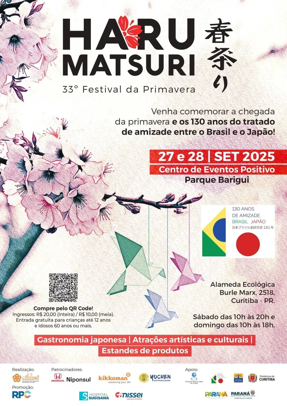 Neste final de semana, Curitiba recebe a 33ª edição do Haru Matsuri, festival que celebra a chegada da primavera. Neste ano, o evento também comemora os 130 anos do Tratado de Amizade entre Brasil e Japão. O evento acontece neste sábado e domingo (27/09 e 28/09) no Centro de Eventos Positivo, no Parque Barigui, reunindo atrações culturais, artísticas e gastronômicas.