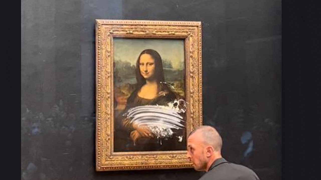 O quadro mais famoso do mundo, a pintura La Gioconda, de Leonardo Da Vinci, também chamada de Mona Lisa, sofreu neste domingo (29) o que parece ser um ataque com um bolo por um visitante que esteve no Museu do Louvre.