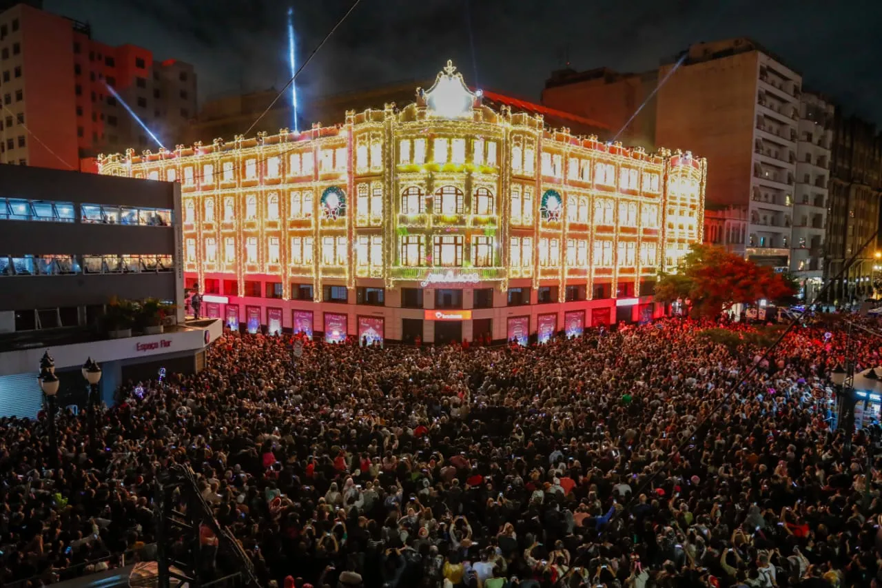 O Calçadão da Rua XV de Novembro está iluminado pela 34ª edição do Natal do Palácio Avenida. Com o tema “AbraLaços”, 90 crianças entre 6 e 12 anos encantaram o público com suas vozes nas janelas do icônico edifício. Assista abaixo um trecho de como foi a apresentação deste sábado (14):