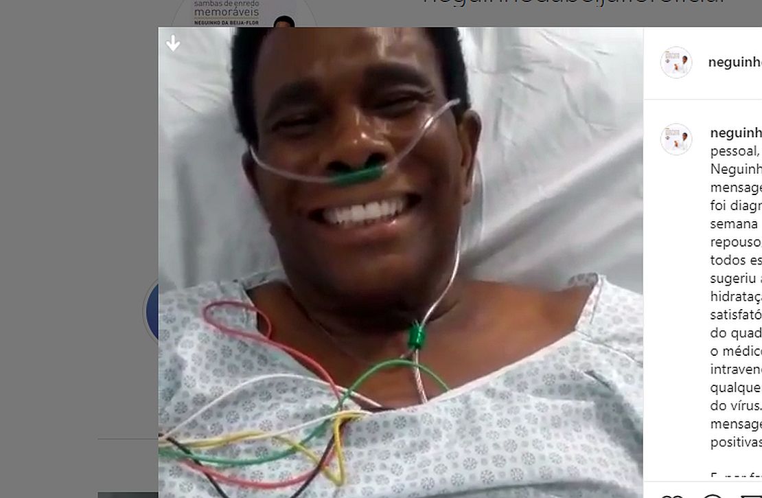 Ele também pediu orações para o pai. Há uma semana, no último dia 19, Neguinho publicou um vídeo no seu Instagram fazendo o exame para saber se tinha contraído o novo coronavírus, já que ele afirmou estar com sintomas da doença.