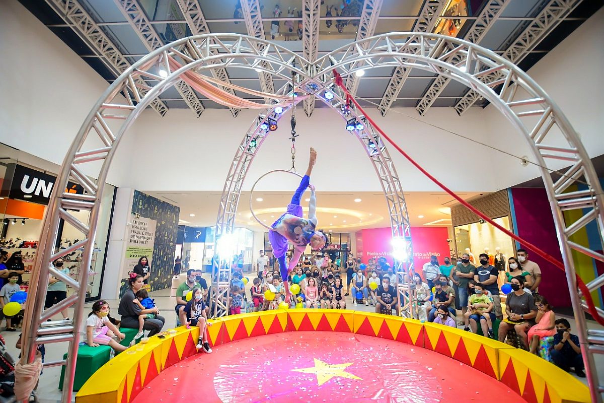 Além das apresentações circenses, a programação inclui oficinas de slime, jardinagem, brigadeiro, bijuteria, escultura de balões, camarim de pintura e cabelo maluco.
