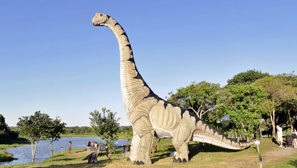 Os dinossauros estão esperando por você no Parque das Águas, em Pinhais, na Região Metropolitana de Curitiba. Um sucesso nos anos anteriores, o Parque dos Dinossauros retornou ao município na última sexta-feira (8), mas chega ao fim e se despede da cidade no próximo domingo (17). Batizada de Jurassic Aqua, a exposição faz parte da programação de aniversário de 32 anos de Pinhais. Veja vídeo e fotos abaixo!