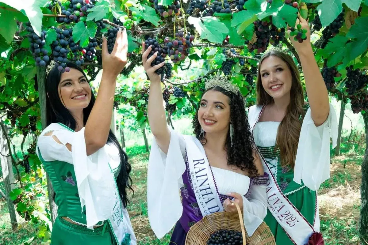 A definição da realeza ocorre por meio de concurso. Neste ano, 15 candidatas disputam os títulos de Rainha, 1ª Princesa e 2ª Princesa da 59ª edição da Festa da Uva. A proposta é celebrar três pilares da cidade: a força da agricultura, a herança cultural trazida pelos imigrantes italianos e a própria identidade colombense.