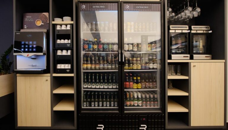 A unidade conta também com uma estação de vinho self-service, com quatro tipos de vinho para degustar. Há ainda uma estação de cervejas artesanais e de café, pra quem não consome bebida alcoólica.