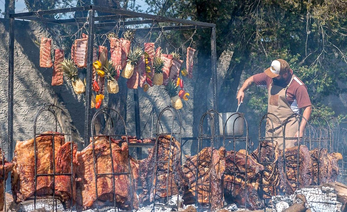 O cardápio conta com costela bovina e suína, filé de coxa de frango, linguiça, mandioca cozida com bacon e provolone, arroz branco e maionese.