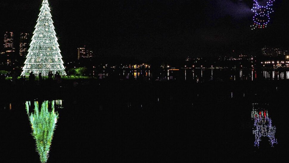 O céu do Parque Barigui vai brilhar nesta quinta-feira (7) à noite com o show de drones luminosos no entorno da árvore de Natal do ParkShoppingBarigüi, patrocinador do evento. Sucesso na edição passada, o balé aéreo volta na programação do Natal de Curitiba 2023.