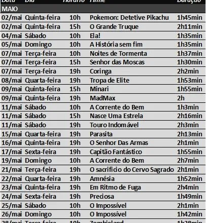 O novo cinema terá em sua programação todos os gêneros de filmes – dos lançamentos, passando por infantis e clássicos. “Pretendemos também oferecer sessões especiais, com presença de diretores, elenco ou equipe de produção, aproximando a população do cinema. Mesmo em tempo de streaming, o cinema continua sendo um evento e uma programação especial para todos”, finaliza.