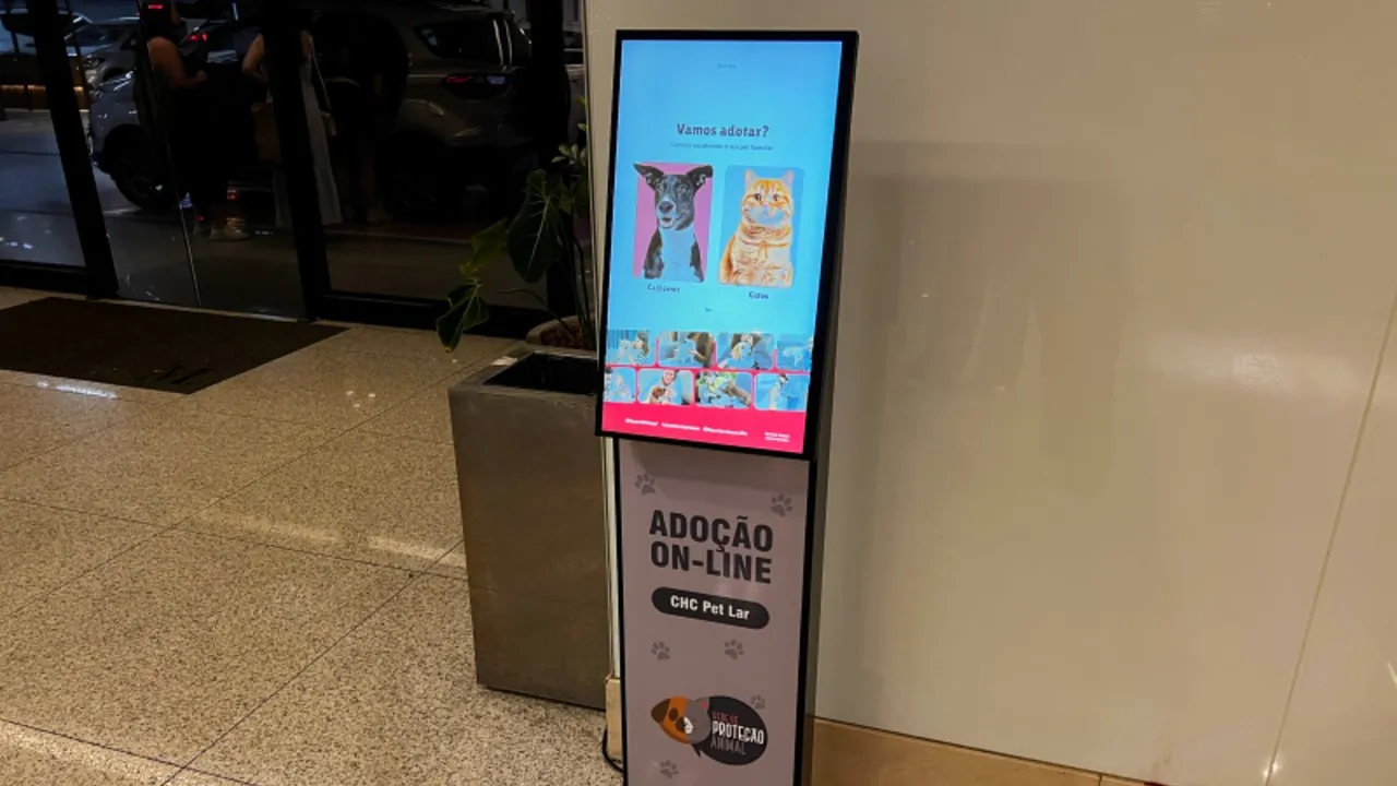 Por meio do totem, quem passa pelo shopping pode conhecer cães e gatos acolhidos pelo CRAR – Centro de Referência para Animais em Risco. A tecnologia permite acesso a informações detalhadas sobre cada animal, desde sua história de vida até características comportamentais, tudo acompanhado de fotos.