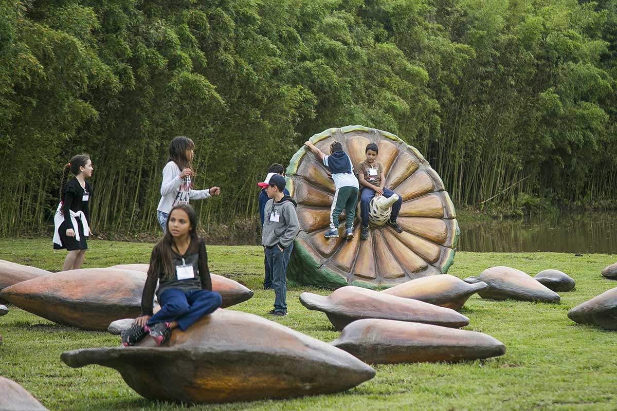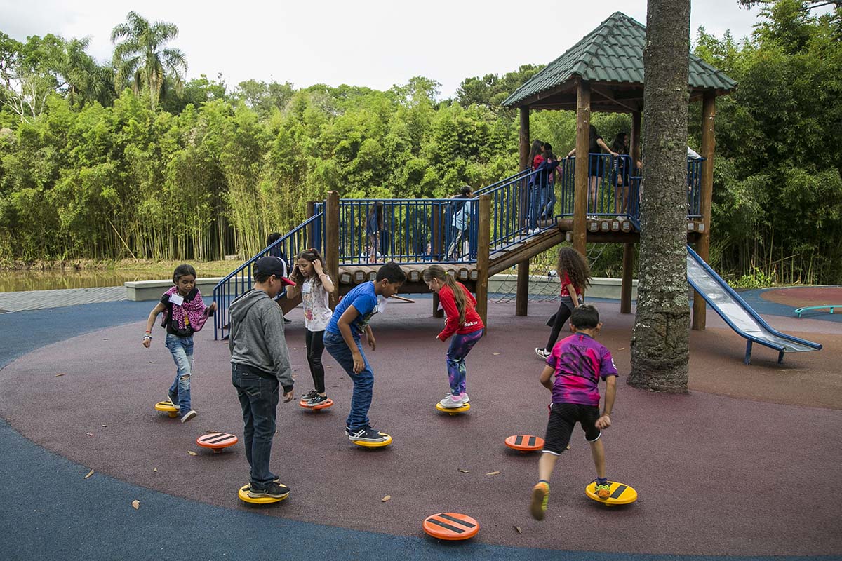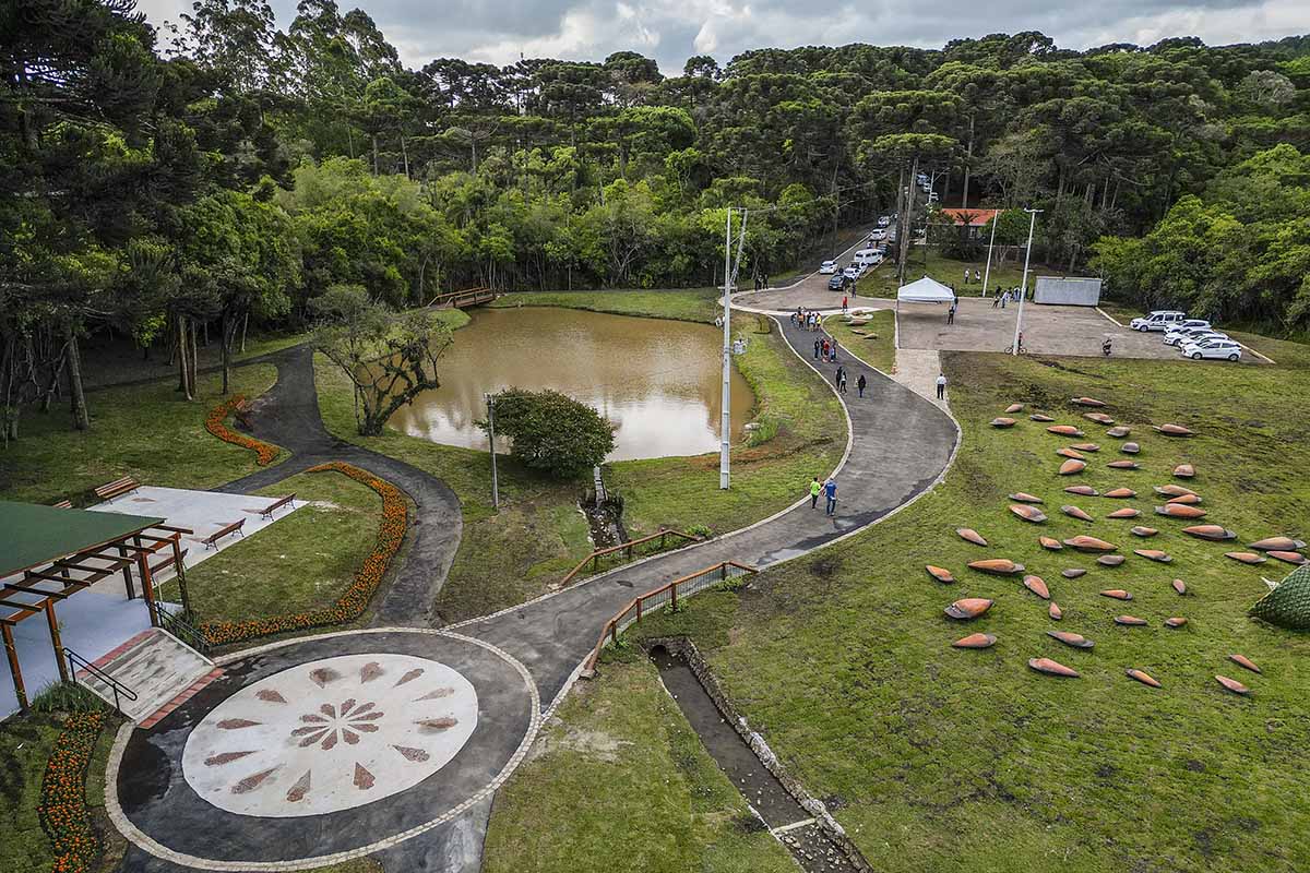 Esculturas de uma pinha e pinhões gigantes, feitas pelo artista Índio Artesão, são o grande diferencial do espaço. “Eles estão aqui para lembrar aos curitibinhas o nome da nossa cidade, que significa muito pinhão”, explicou o prefeito aos estudantes da Escola Municipal Joana Raksa, que foram conhecer o parque em primeira mão.