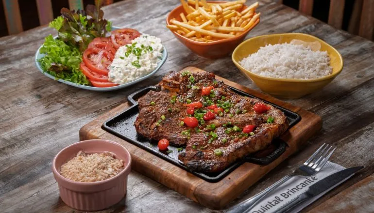 Agora, aos domingos, o Quintal serve Carnes na Chapa com gastronomia afetiva, bem servida e cheia de sabor. Entre as chapas: Parmegiana (com batata frita); Coxa e sobre coxa assadas com batatas; Filé de igreja – todas as chapas acompanham arroz branco, maionese de batata, farofa crocante e salada de alface, tomate e cebola.