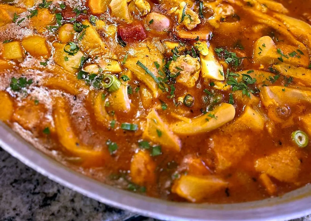 O caldo encorpado, rico em sabor e temperado na medida certa, é o convite perfeito para saborear com arroz branco e uma boa pimenta caseira.
